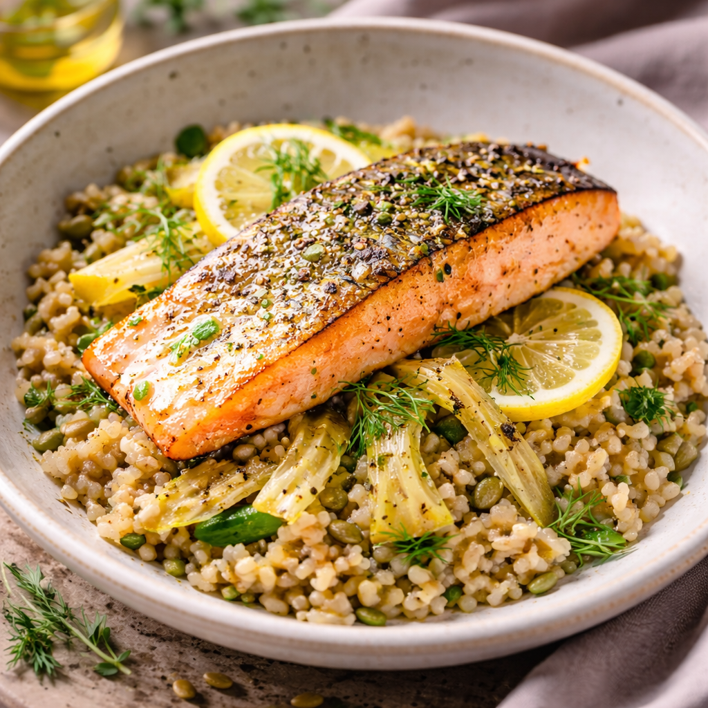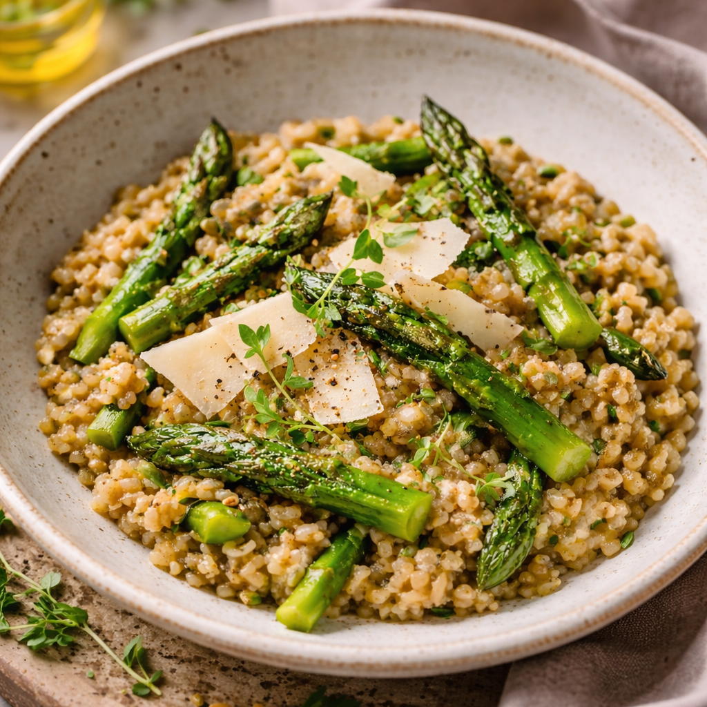 Risotto d’épeautre aux asperges vertes et vieux comté